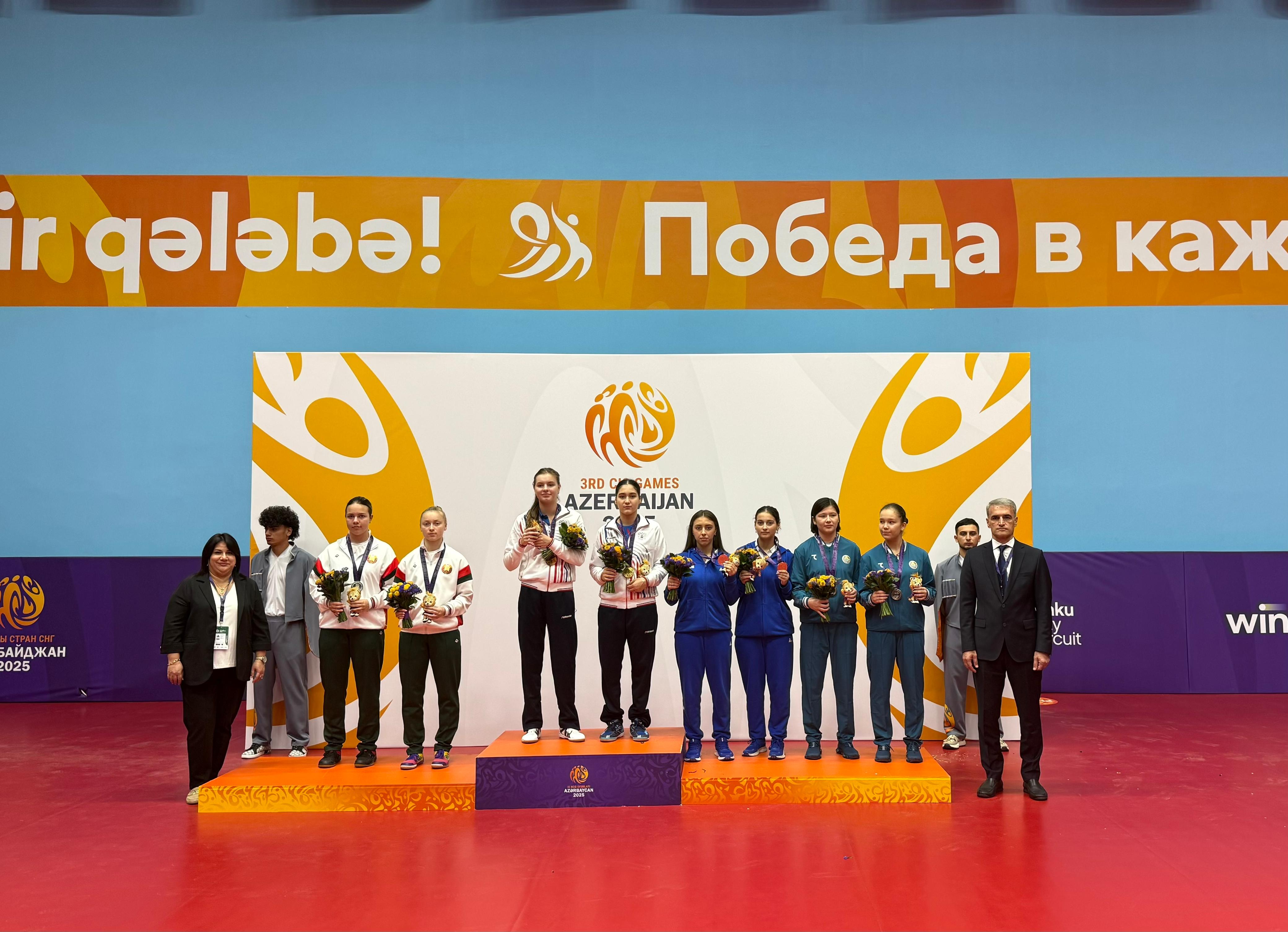 Xatırladaq ki, bundan əvvəl oğlanlardan və qızlardan ibarət kollektiv komanda yarışlarında, Onur Quluzadə ilə Adil Əhmədzadə qoşa yarışlarda gümüş mükafata layiq görülüb. Qarışıq-qoşa yarışlarda bacarığını göstərən Onur Quluzadə-Mərziyyə Nurmətova cütü və qoşa yarışlarda mübarizə aparan Aylin Əsgərova-Yağmur Məmmədli tandemi üçuncü yeri tutub. Yağmur Məmmədli isə 14 yaşlılar arasında bürünc medal qazanıb. Beləliklə, stolustü tennisçilər III MDB Oyunlarını 6 gümüş, 3 bürunc medalla başa vurublar.